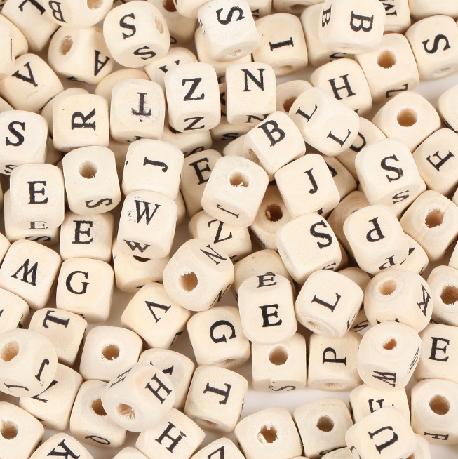 Koraliki Kulki DREWNIANE Literki 10mm 100szt EKO
